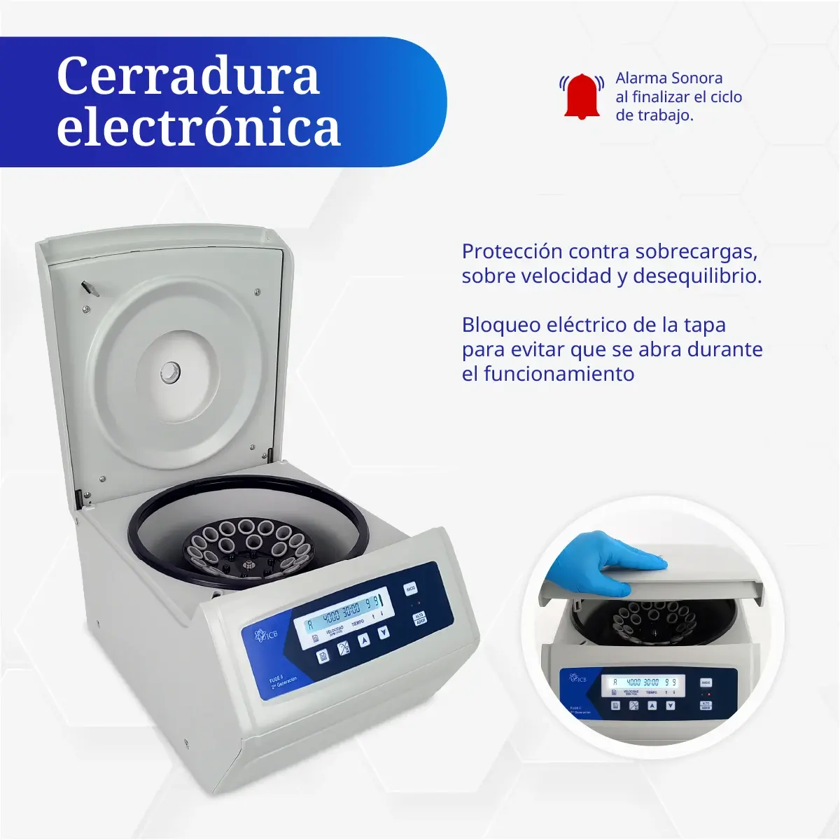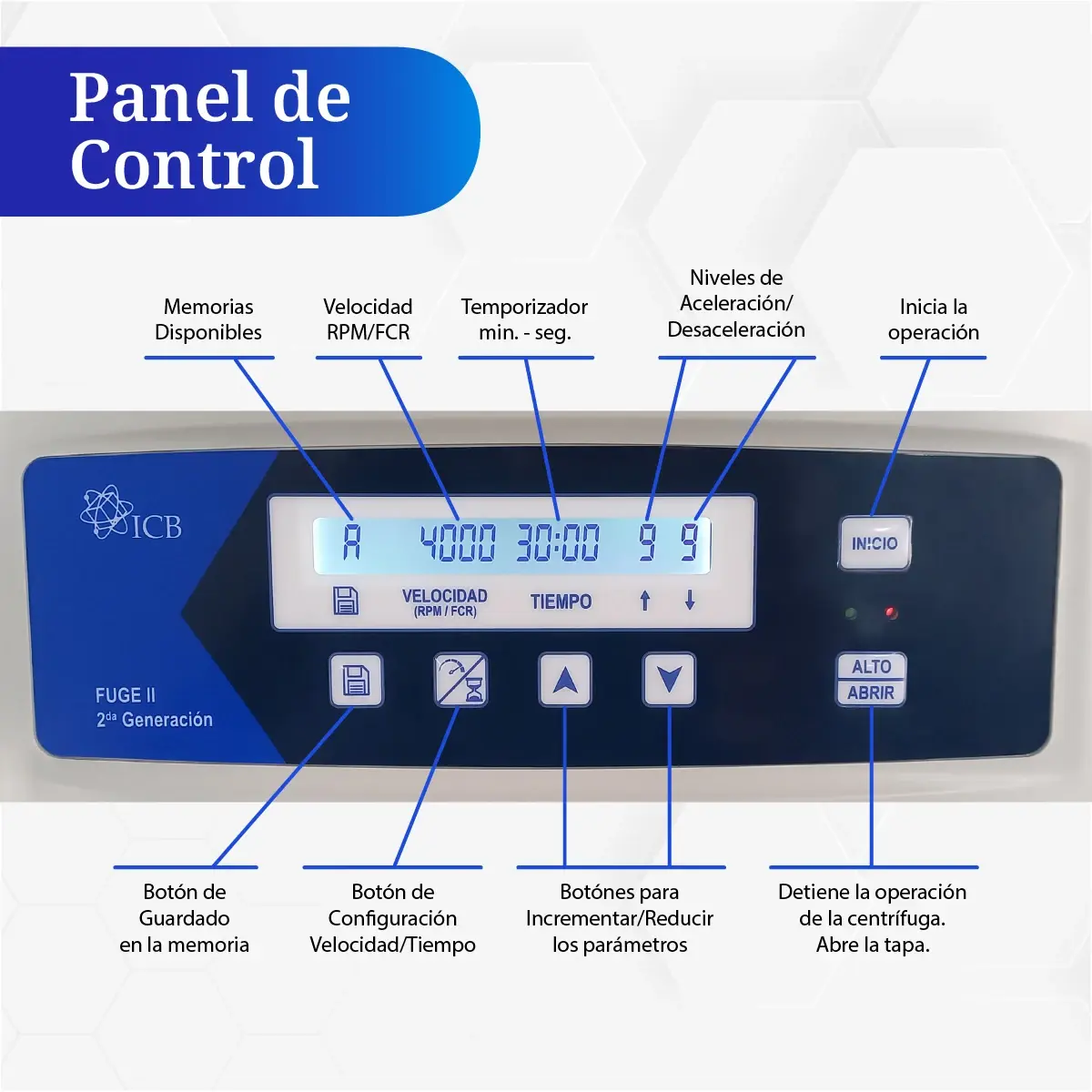 | • Almacenamiento de programas de centrifugación definidos por el usuario. |