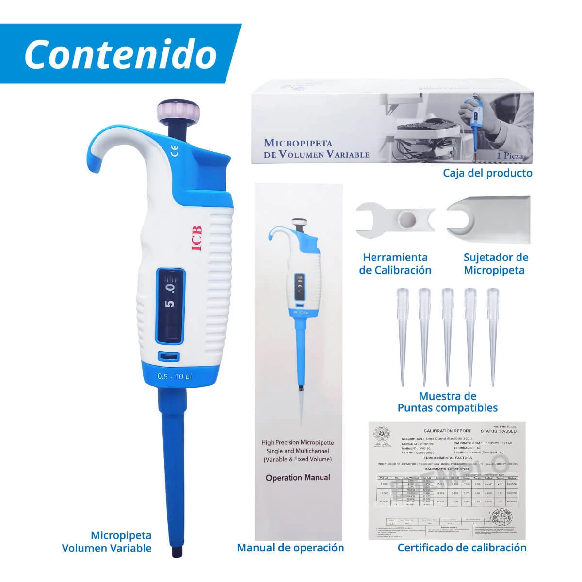 Micropipeta de volumen variable de 0.5-10 μl de la marca ICB es indispensable los laboratorio para la medición precisa y la transferencia de líquidos en el rango de microlitros. Esta micropipeta combina versatilidad y precisión, permitiéndote ajustar el volumen según tus necesidades específicas.