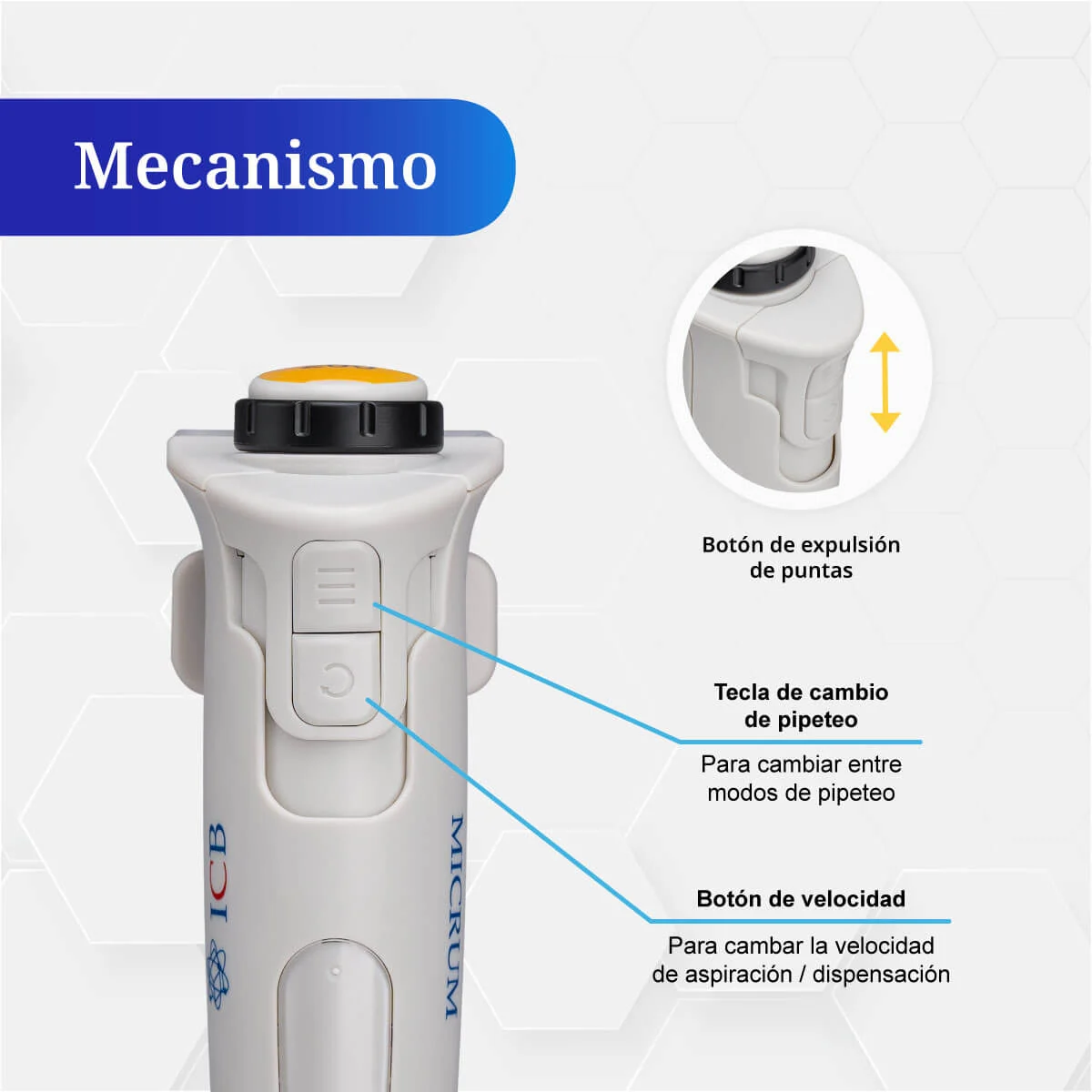 Con estas características, la micropipeta garantiza un rendimiento confiable en aplicaciones que requieren precisión y eficiencia.
