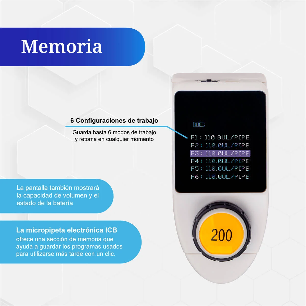 Micropipeta Electrónica de 200 µL de ICB está diseñada para cubrir necesidades intermedias de manejo de líquidos, ofreciendo precisión y comodidad en cada uso. Su diseño avanzado la convierte en una herramienta imprescindible para laboratorios que exigen resultados consistentes.