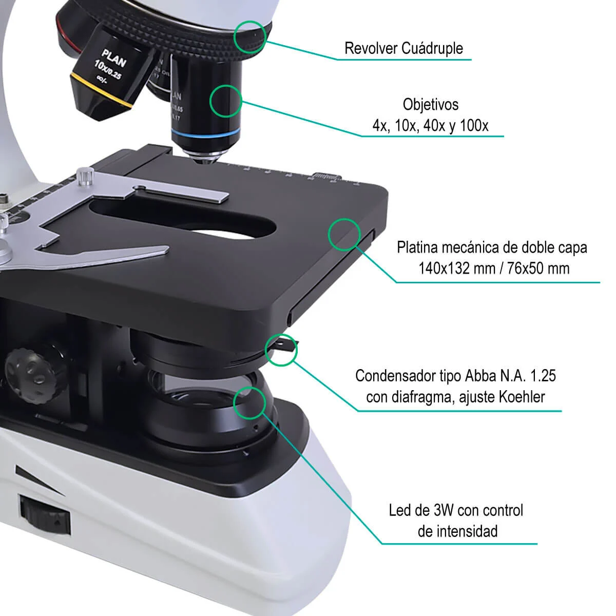 Estas características son esenciales para lograr una observación detallada y una imagen clara de la muestra.
